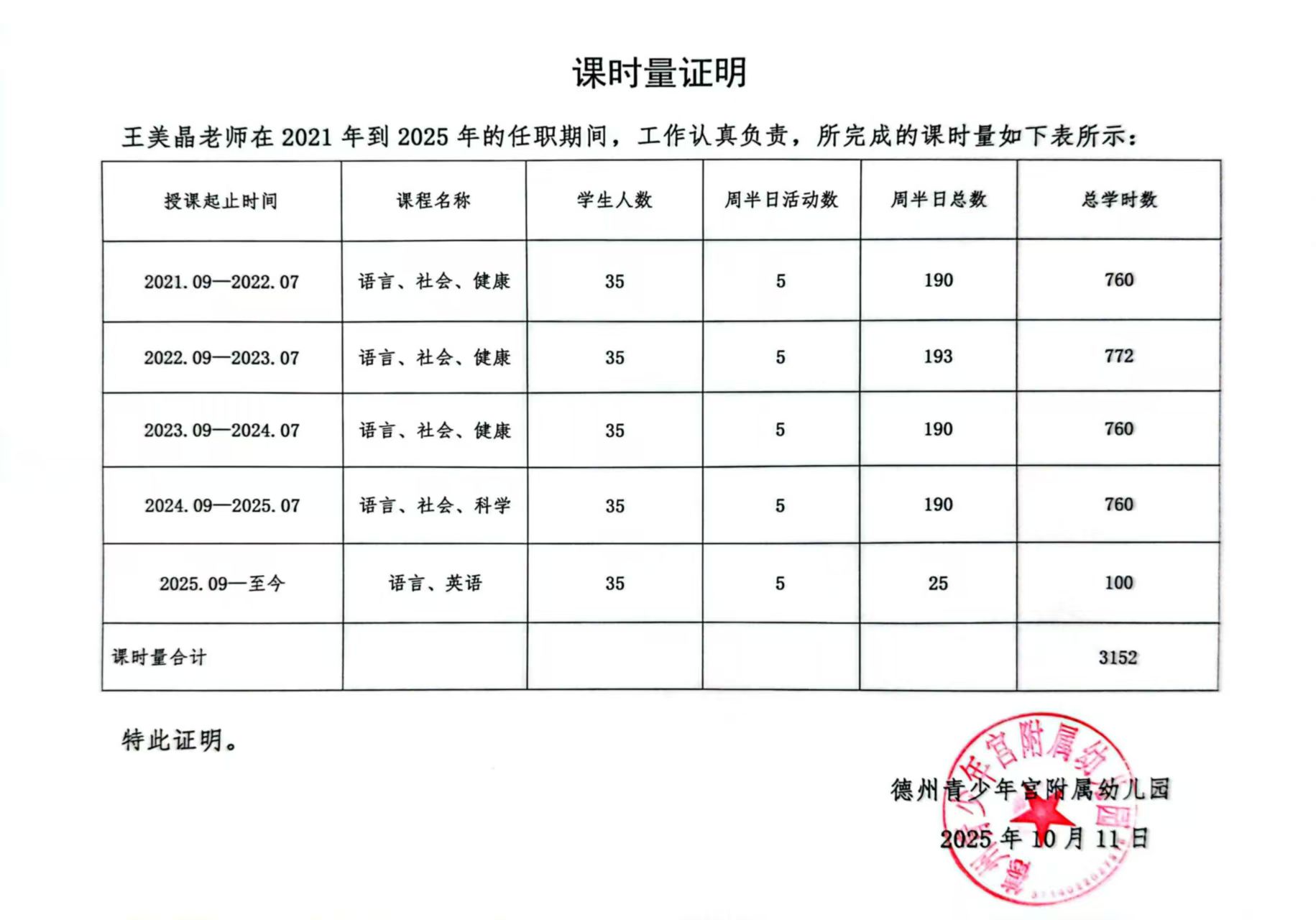 德州青少年宫附属幼儿园教师周课时量安排